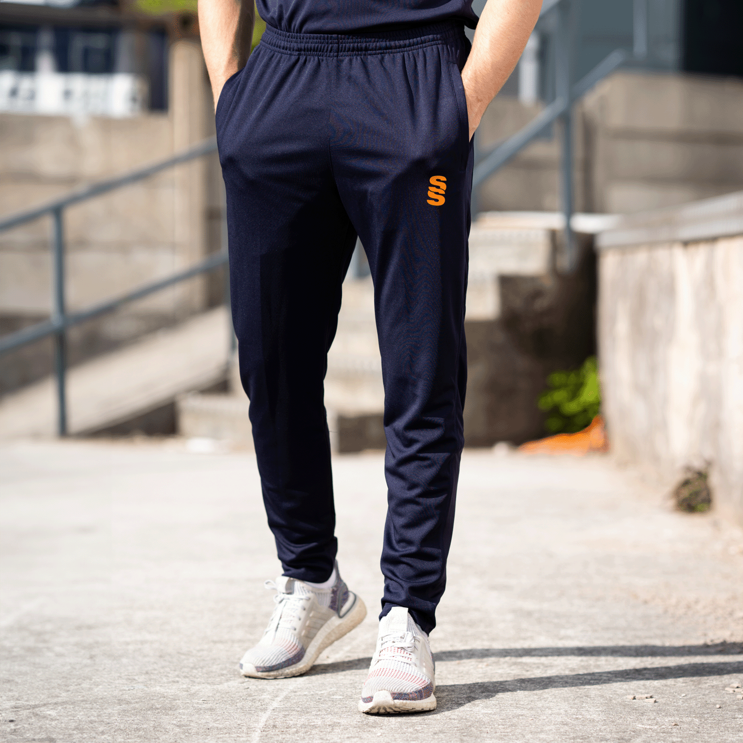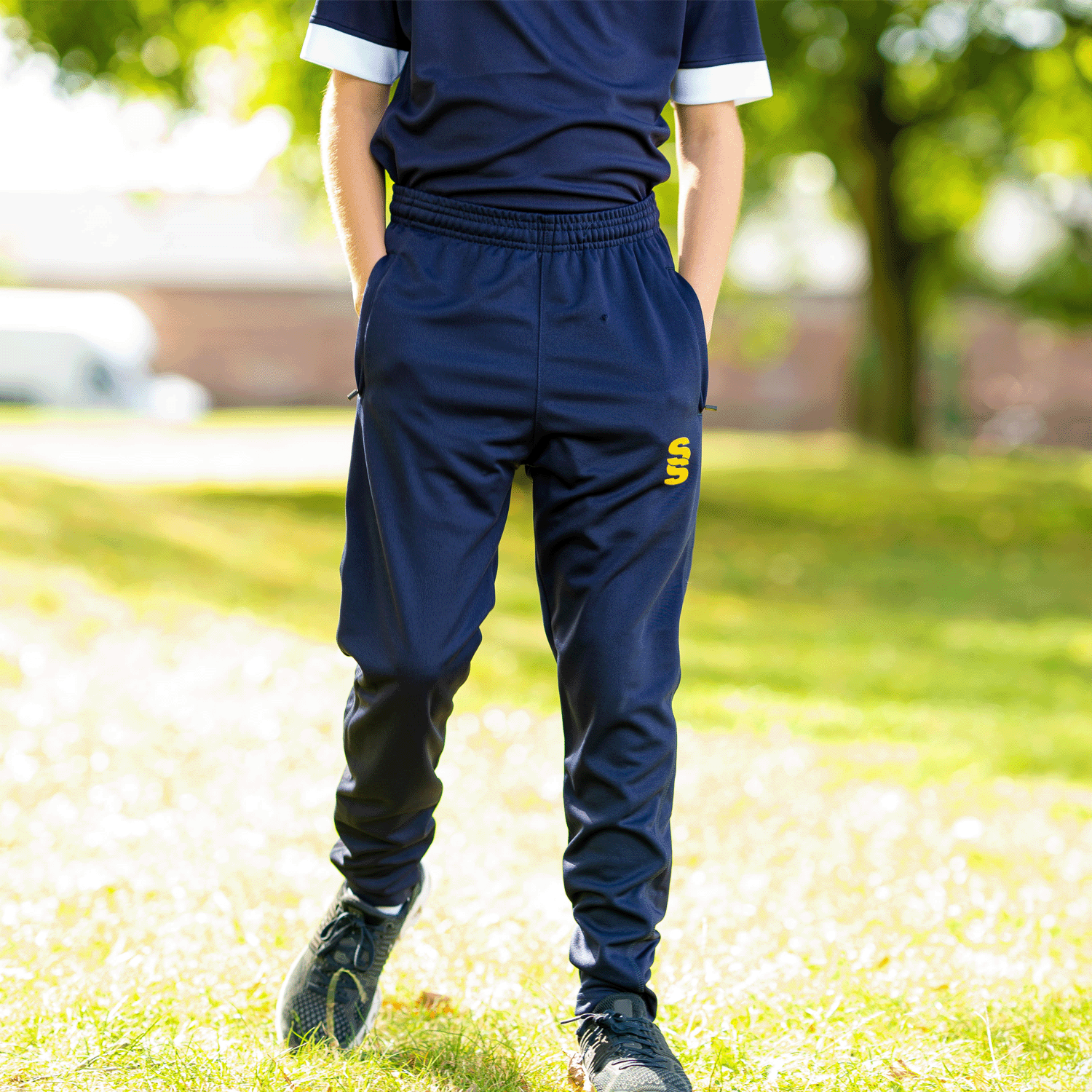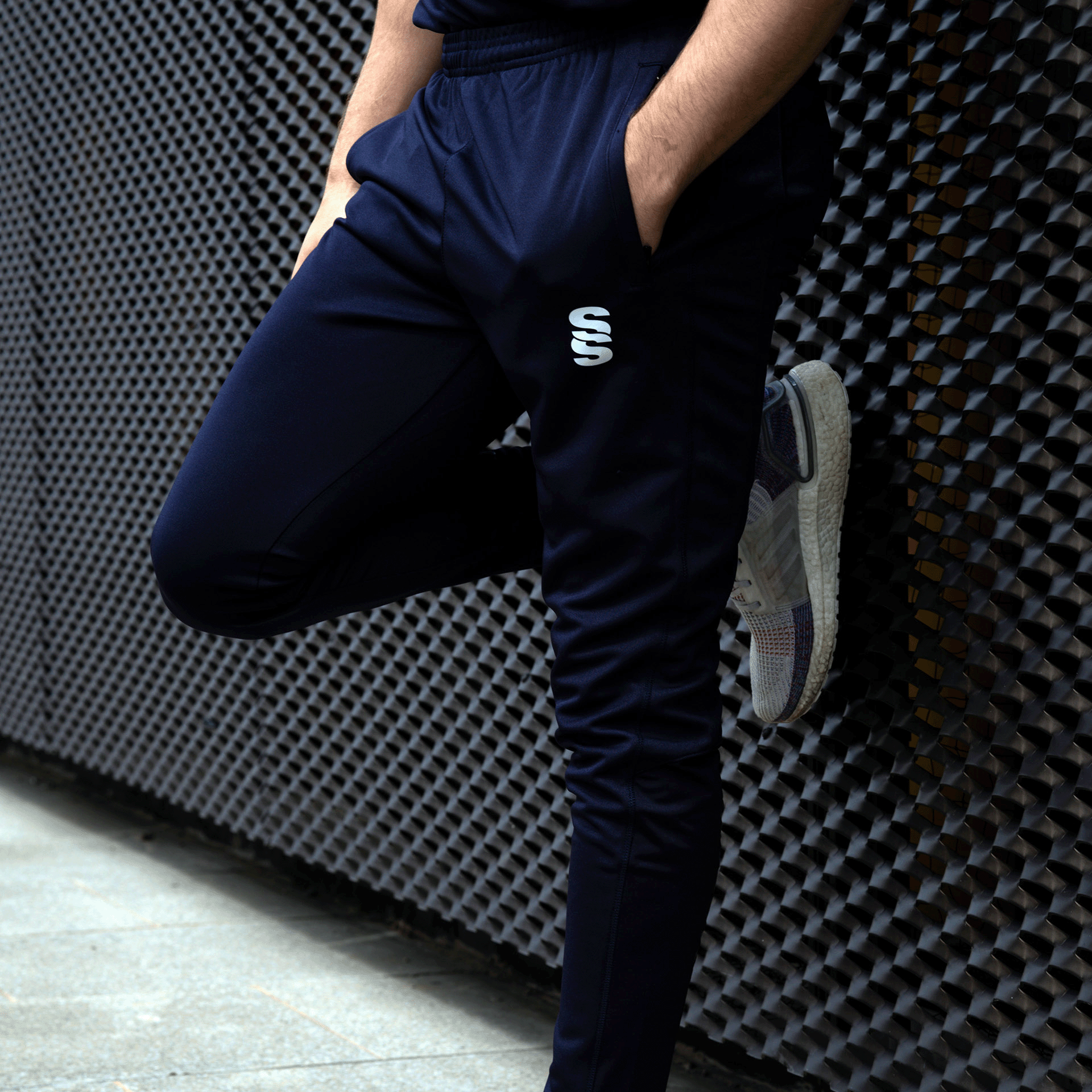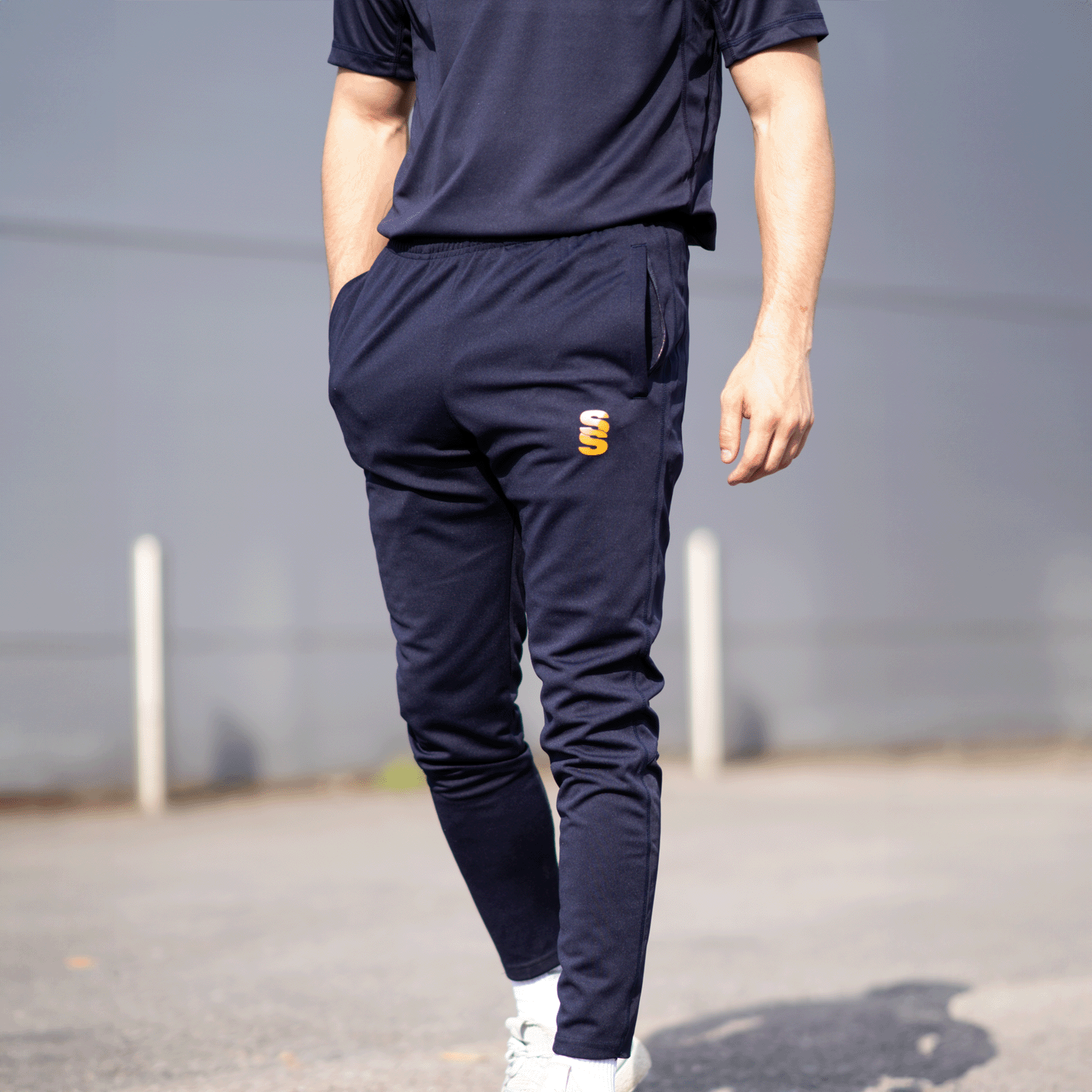 The Skinny Pant is made of soft feel stretchy polyester material, interlocked for performance. A Lycra insert at the calf provides extra comfort. It features 2 almost-invisible zipped pockets for security. To finish, our Surridge SS logo is printed on to the left thigh.